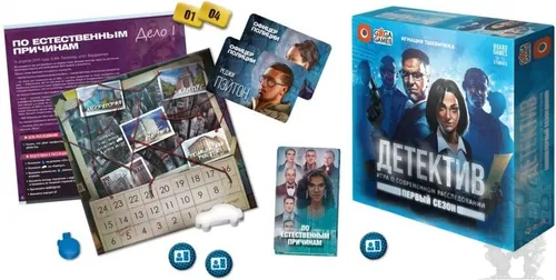 "Детектив. Первый сезон" погрузит вас в нуарную атмосферу современного расследования. Эта серия симуляторов работы детектива хорошо принята игровым сообществом: Detective: A Modern Crime Boardgame была номинирована на Golden Geek Awards в четырёх категориях, а жюри As d'Or признало её лучшей игрой для экспертов. "Детектив. Первый Сезон" – самостоятельная игра, которая идейно продолжает серию, но продолжает развиваться. Правила игры немного изменились: партии стали короче, а каждое дело теперь сюжетно не связано с остальными. Это позволяет играть в разные расследования с разными людьми, не объясняя, что происходило до этого. Работайте в команде, старайтесь мыслить как можно более логично, будьте внимательны и не упускайте мельчайших деталей расследования – ложные гипотезы могут завести в тупик, а каждая секунда может оказаться решающей. Новые дела ждут, за работу!