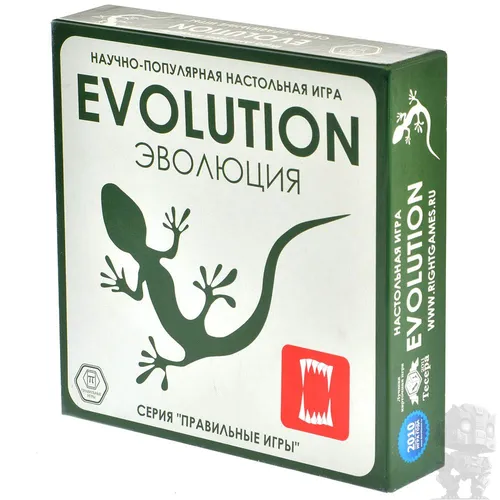 Настольная игра "Эволюция" – это уникальная игра о выживании и адаптации организмов для 2-4 человек, созданная кандидатом биологических наук Дмитрием Алексеевичем Кнорре. Она основана на реально существующих и функционирующих экосистемах и поможет вашему ребёнку в игровой форме понять такой сложный и длительный процесс, как эволюция, и даже поучаствовать в нём! Игра также будет интересна и взрослым, ведь вы сможете создать свою собственную ветвь эволюции и посмотреть, как живые существа приживутся и адаптируются в уже существующих условиях. Создавайте, эволюционируйте и развивайте!